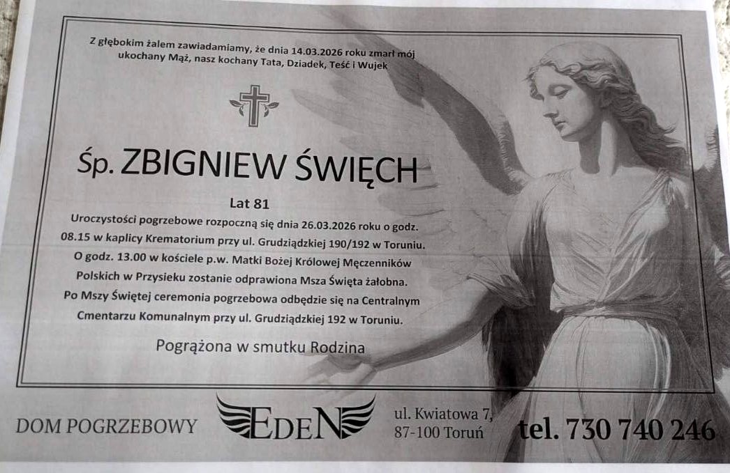 Z przykrością zawiadamiamy, że 14 marca 2026 r. zmarł Zbigniew Święch